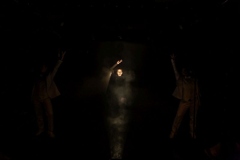 W spektaklu użyte jest światło stroboskopowe.