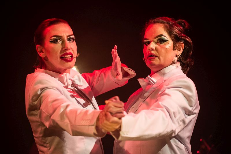 „W czasach drastycznych podziałów społeczeństwa, rosnącej bezradności, hejtu, kwitnącego populizmu, zwyżkującej agresji, malejącej tolerancji oraz wszechobecnego zagubienia, w kraju bez nazwy nad bezimienną rzeką, wśród zburzonych starych kamienic i rozpadających się nowych bloków, w podupadłym kabarecie mieszczącym się w mieszkaniu na pierwszym piętrze zniszczonej czynszówki będziemy świadkami pojedynku sióstr Barabas, Barbary i Berty, słynnych spirytystek-szansonistek, połączonych tak więzami krwi, jak i wzajemną i bezwzględną nienawiścią…”.