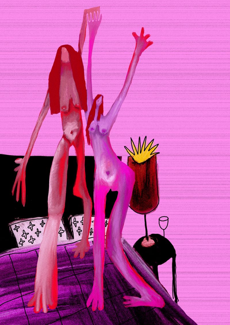Wystawa “Piżama Party” to eksploracja dziewczyńskiej codzienności. Względna atmosfera zabawy, relaksu, przyjaźni, zmienia się w momenty intensywnych emocji, krzyku i dramatu. To podróż przez wspomnienia dzieciństwa, ukazująca zarówno jasne, jak i ciemniejsze strony naszych doświadczeń. To jak zaproszenie postronnych gości do naszej prywatnej bańki, podobnie jak wtedy, gdy koleżanki przychodziły do twojego pokoju i odkrywały jego tajemnice. To także wgląd w brudne przestrzenie codzienności, które przedstawiamy innym, filtrując je przez odcienie różu. To miejsce, gdzie można zastanowić się nad znaczeniem i wartością tych chwil w kontekście naszej tożsamości, przyjaźni i dorastania. Co tak naprawdę kryje się za tymi niezapomnianymi chwilami?